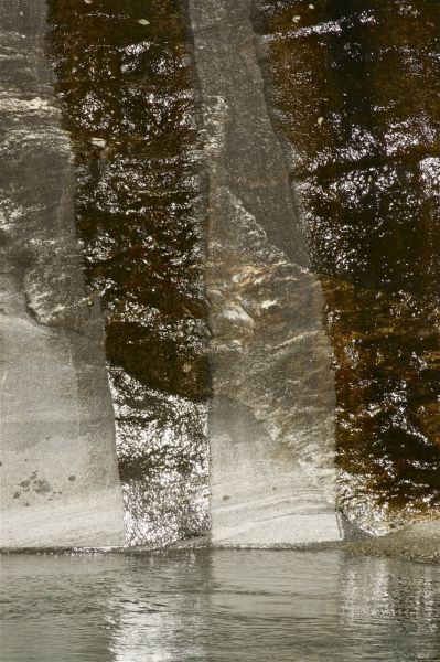 In einer Insallation mit A2 Fotos auf ALU eloxiert wird das Leben der Verzasga gezeigt. Es ist auch Symbol für ein Menschenleben. Manchmal ist es ein Rinnsal, machmal sprudelt es oder es ist verstopft.